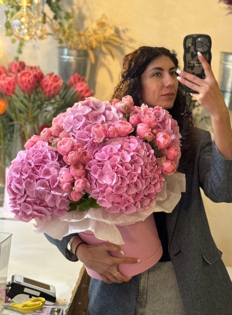 Delikatna klasyka w eleganckim wydaniu. Okazała hortensja i piwoniowa róża gałązkowa „Silva” tworzą miękką, harmonijną kompozycję pełną światła i spokoju. To pudełko kwiatowe będzie idealne na podziękowanie, wyznanie lub subtelny komplement.